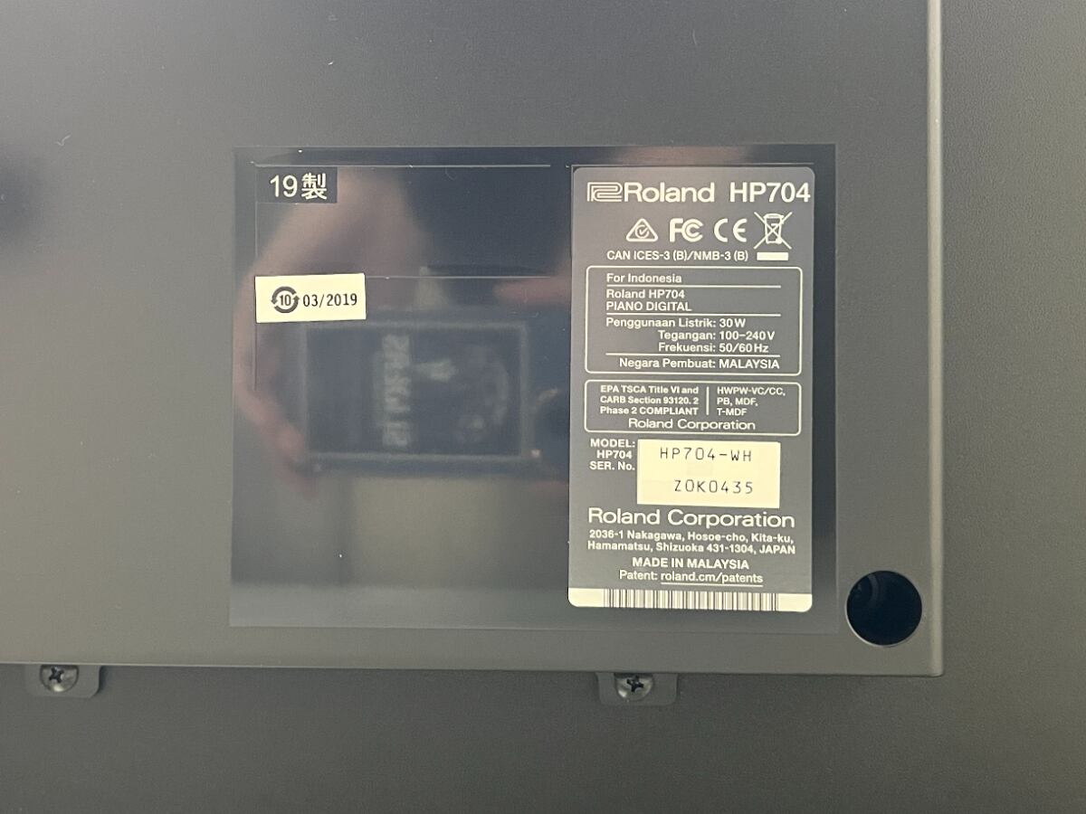 ローランド HP704-WH ホワイト 2019年製 | 電子ピアノ 中古 88鍵盤 美品 | 木製鍵盤 【中古電子ピアノ専門店】 千葉・東京・神奈川・埼玉・愛知限定 配送設置込 2000000005249